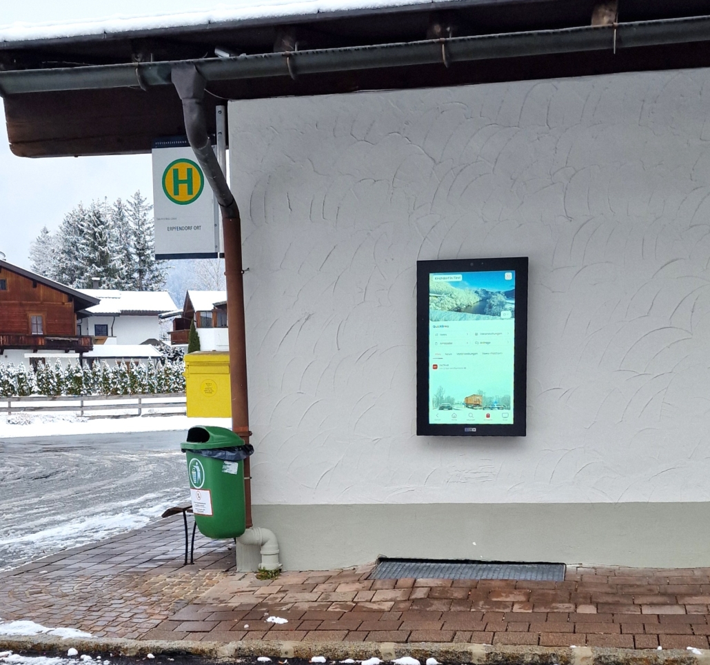 In Kirchdorf wurde unser Wandmodell in der Ausführung Edelstahl inkl. Glasrahmen installiert, das System wurde mit Gem2Go von der Gemeinde verbunden.